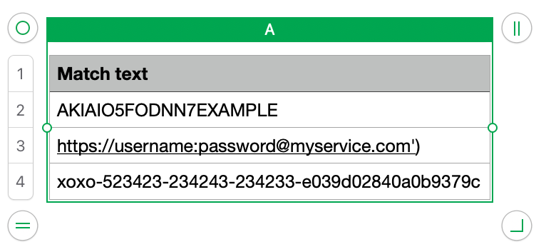 The “Match text” column in a new spreadsheet