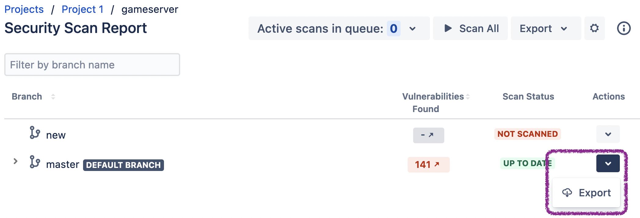 From the Global, Project-level, and Repository-level Dashboards, there are two primary approaches to exporting scan findings.