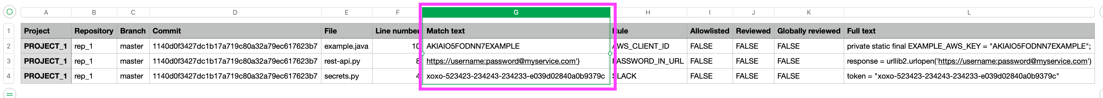 Locate the “Match text” column, and copy it to another spreadsheet: