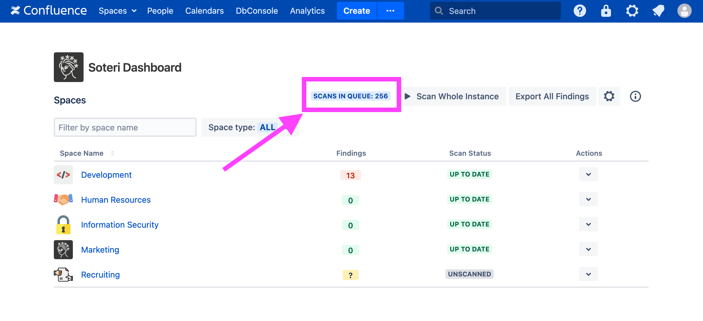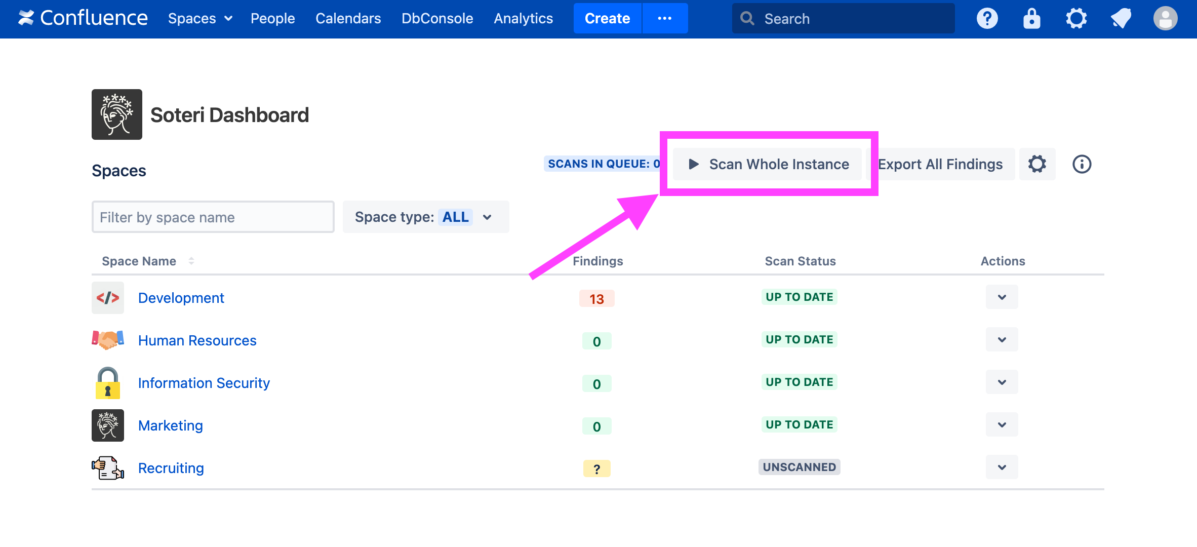 Pushing this button will trigger scans for every space in the Confluence instance.