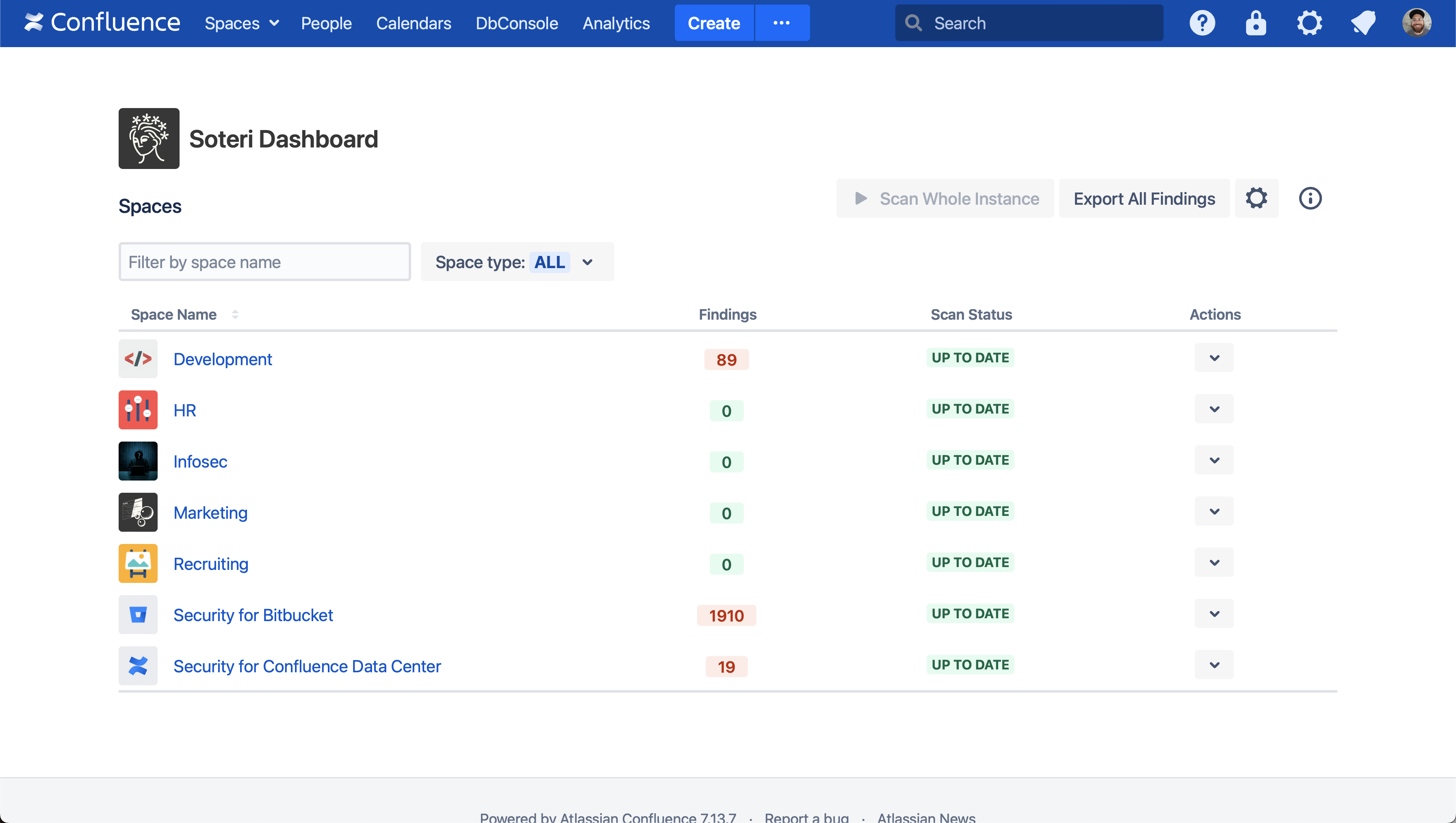 The Soteri Dashboard: Viewing Confluence's overall security status