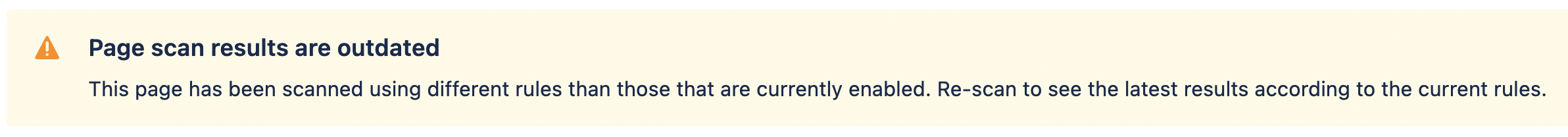 This warning also appears for each page where global rules have changed since its last scan.