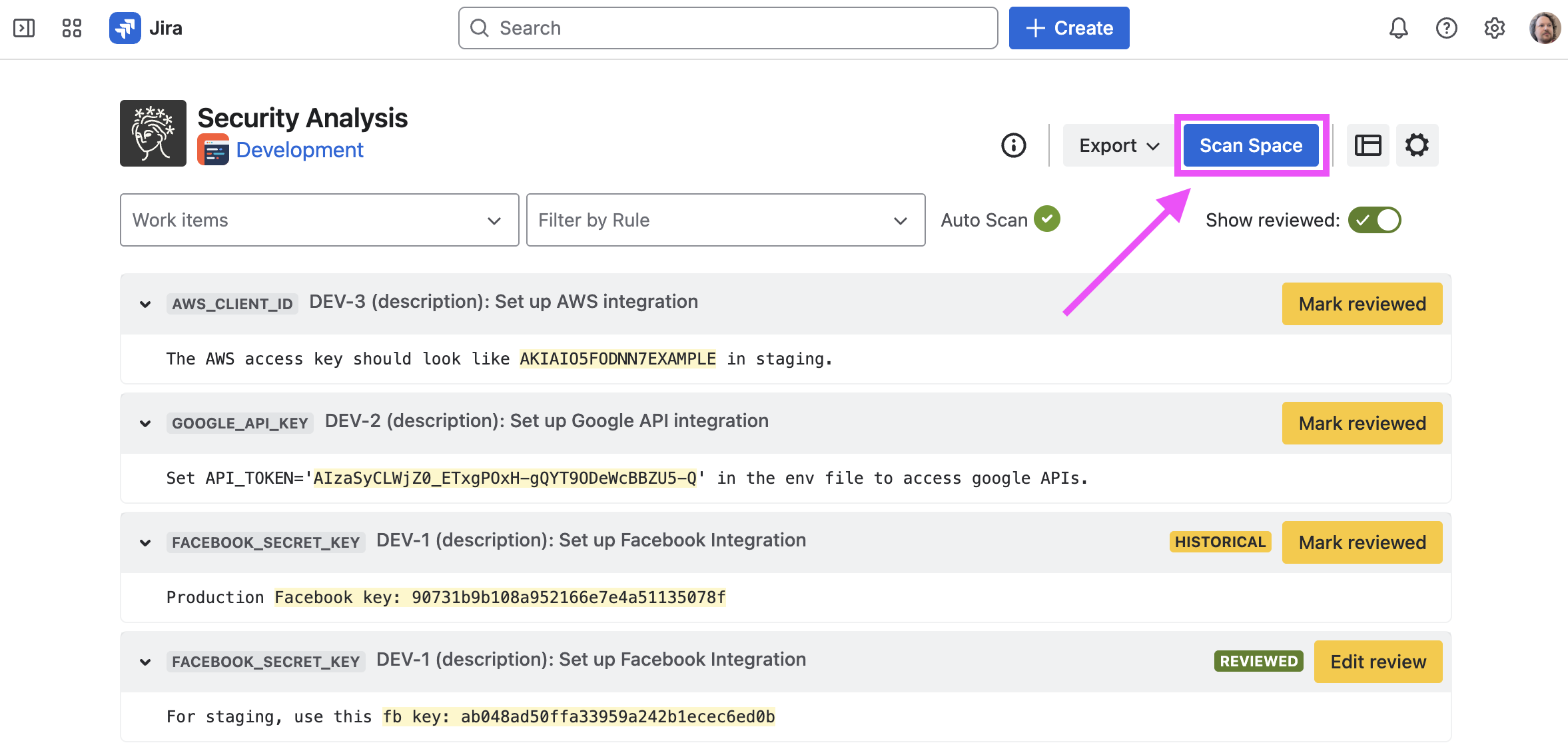 Jira has no built-in mechanism to detect content that contains sensitive credentials that could fall into the wrong hands, and typical workflows make this an all-too-easy omission, even by well-intentioned users.