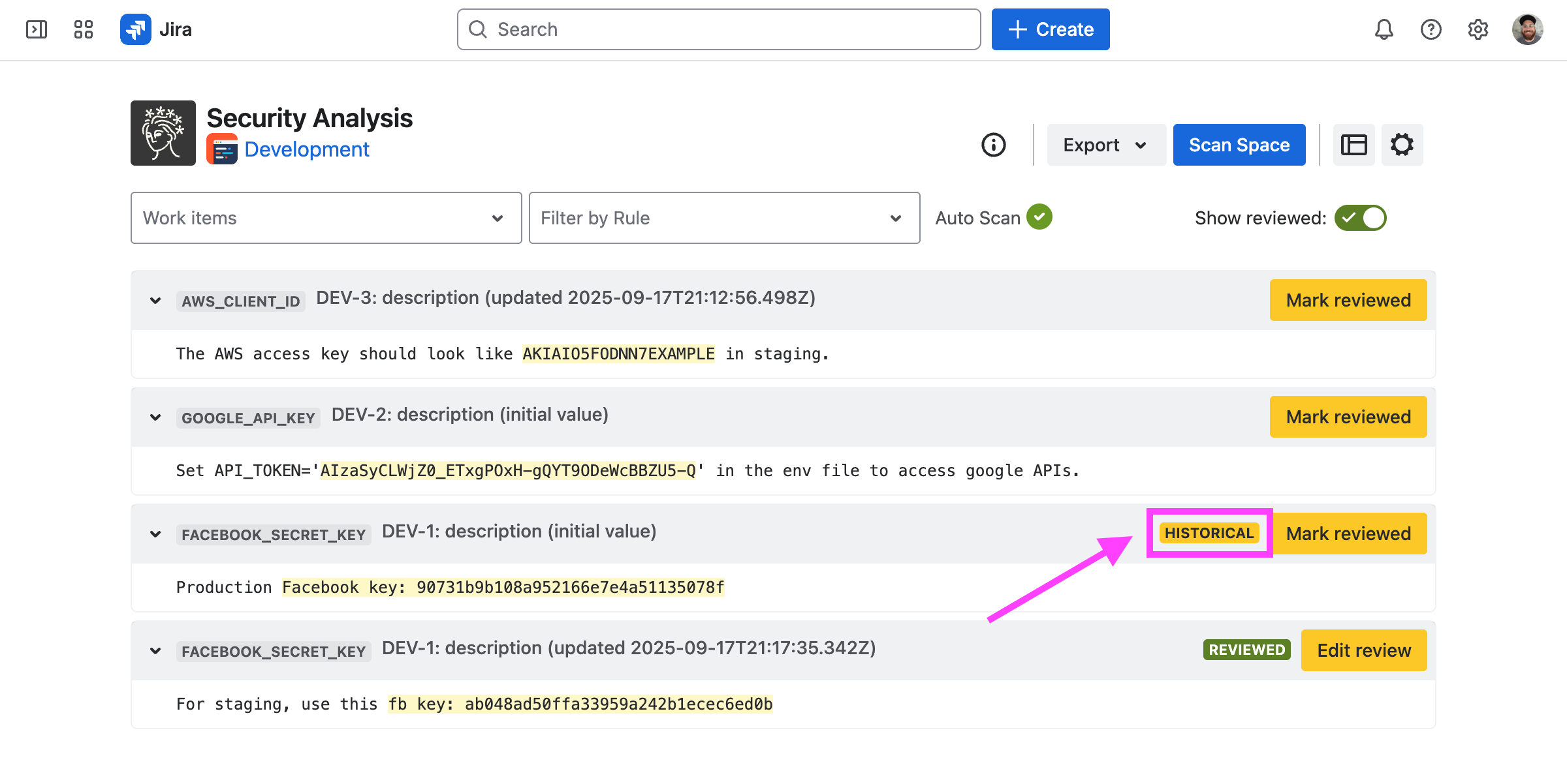 Only space administrators and Jira administrators can access a space’s Security Analysis.