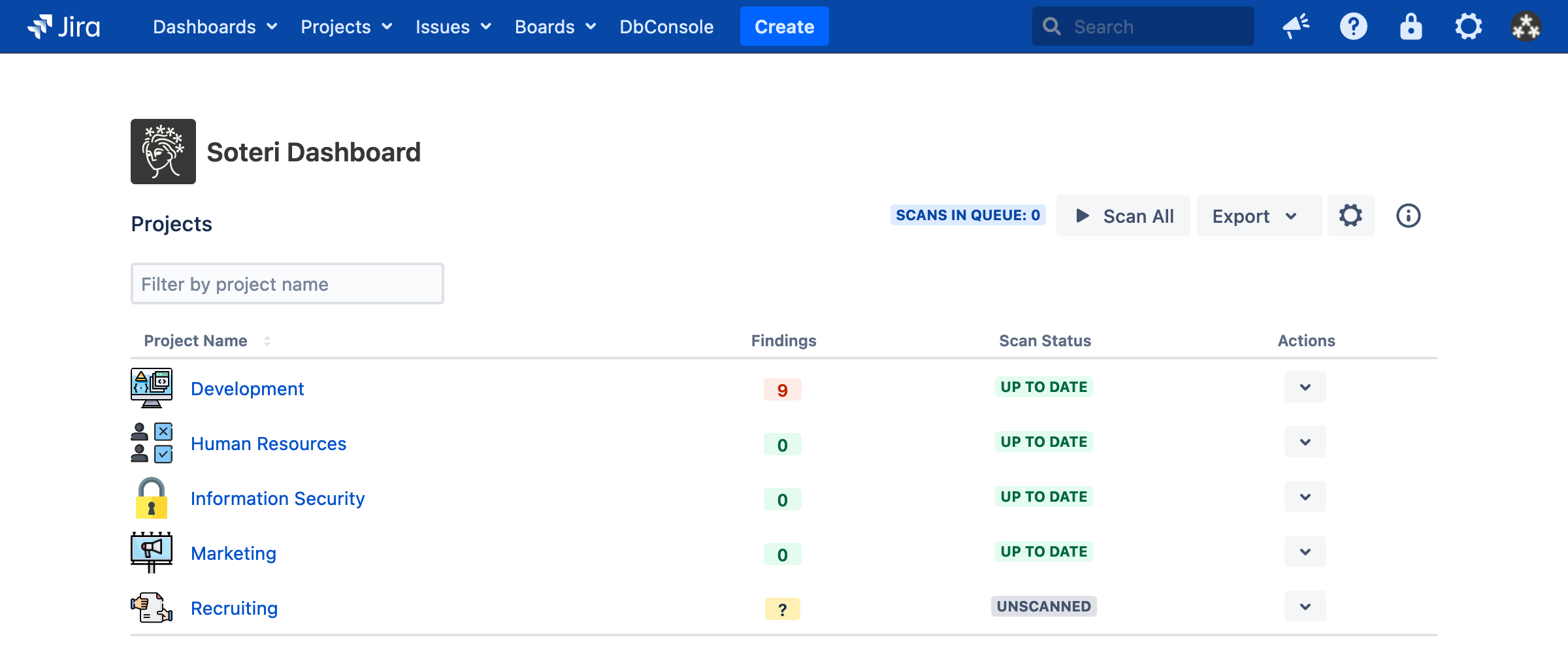 Pushing this button will trigger scans for every project in the Jira instance.